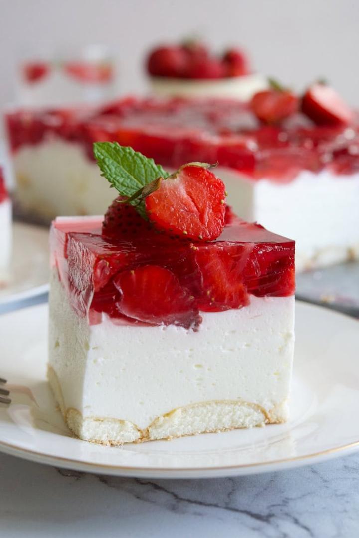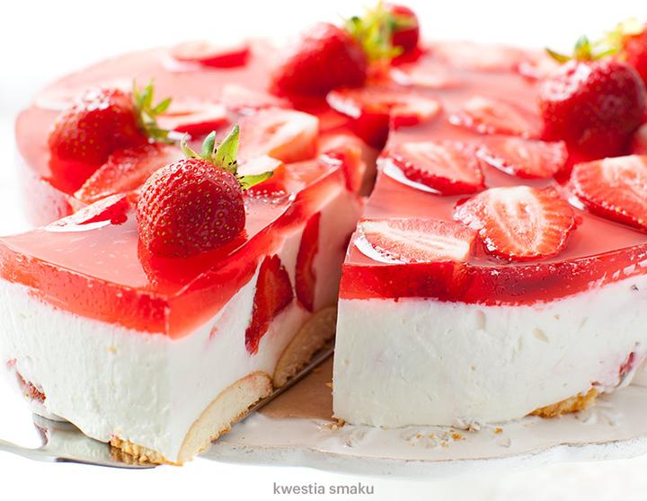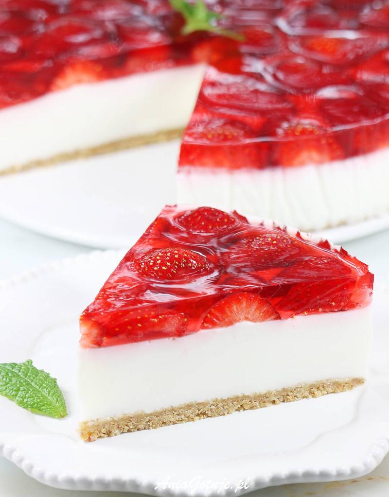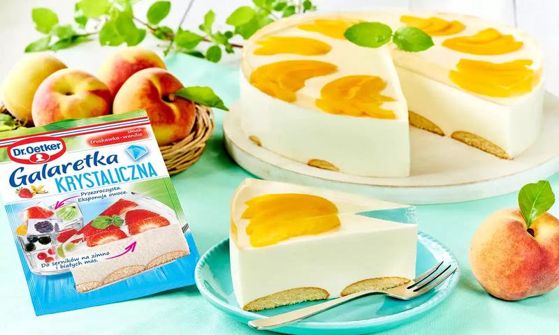 | Bezglutenowy sernik na zimno | Mieszanka do ciasta, galaretka owocowa, owoce (truskawki, jagody, brzoskwinie) |
